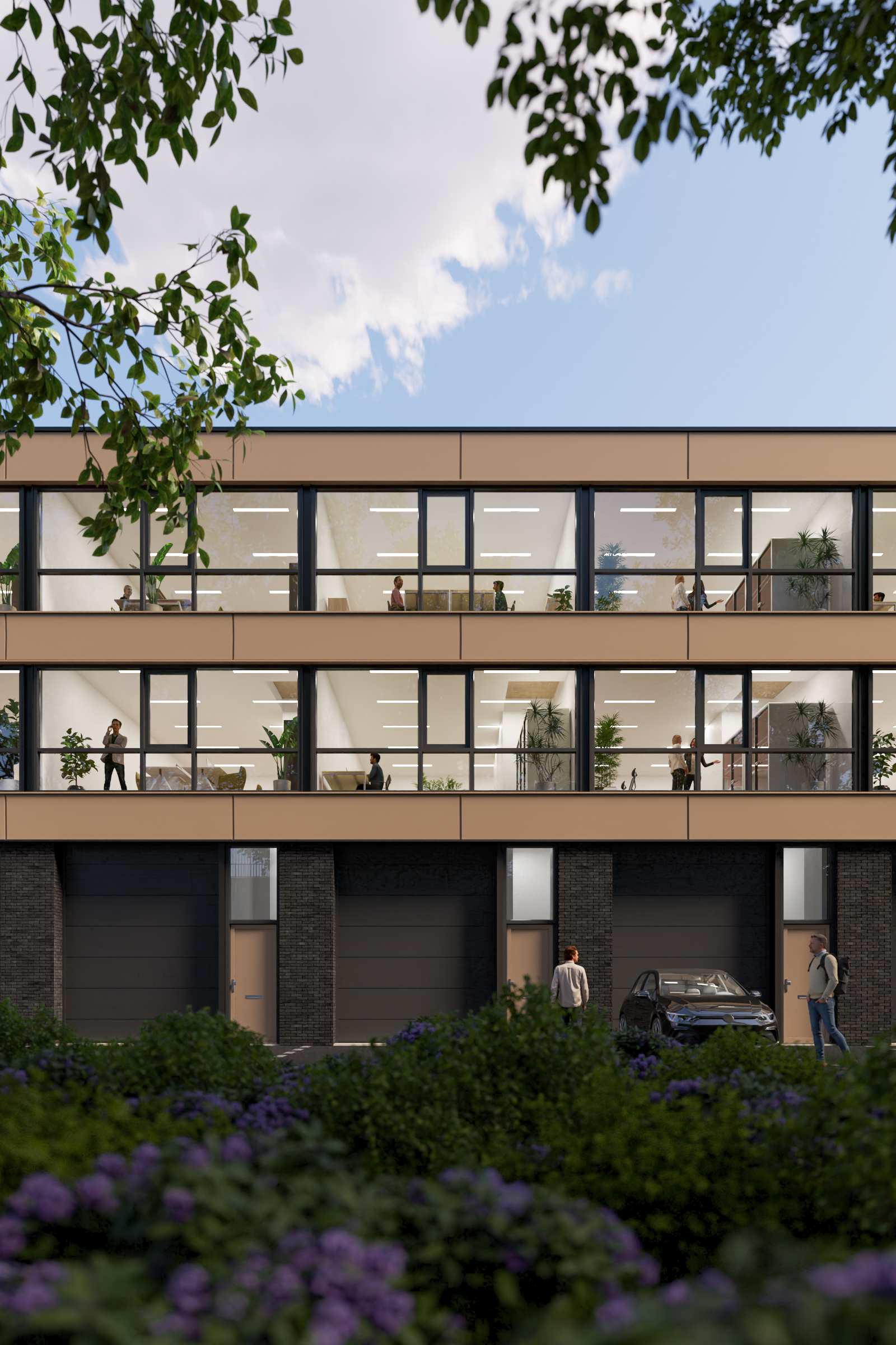 - Onderbouw gevel van metselwerk en veel glas op de verdieping